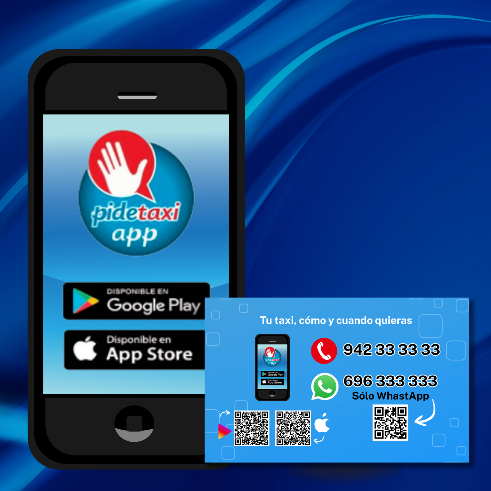 Creación códigos QR para tarjetas e impresión de tarjetas. Ha sido una colaboración con ellos para que crezcan los pedidos de taxi por WhastApp.